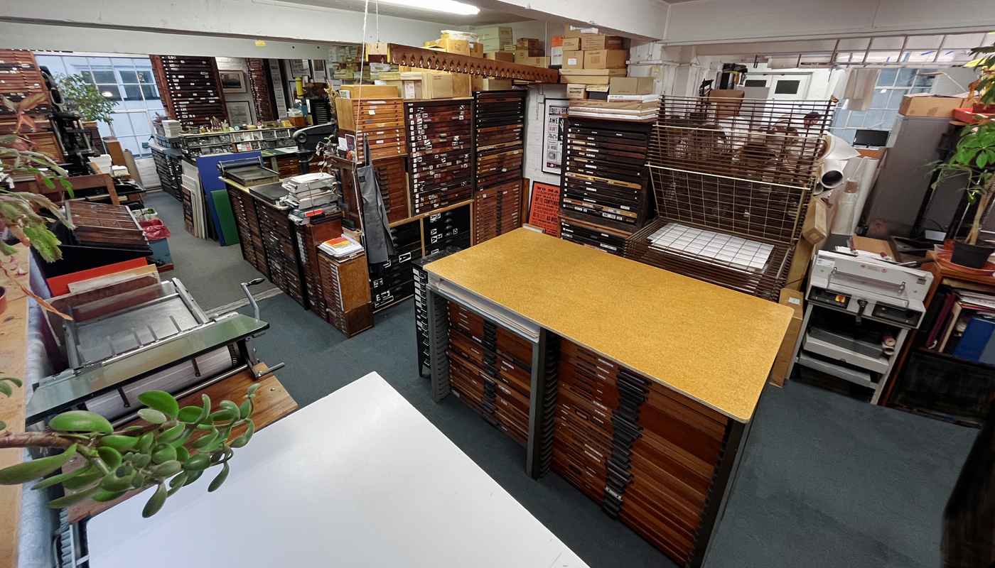 Our extensive library of type contains over 700 fonts in a huge variety of styles and sizes, from large woodtype to decorative and text fonts in metal and, of course, our prototype 3D-printed letterpress font.